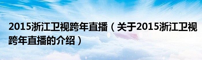 2015浙江卫视跨年直播(关于2015浙江卫视跨年直播的介绍)
