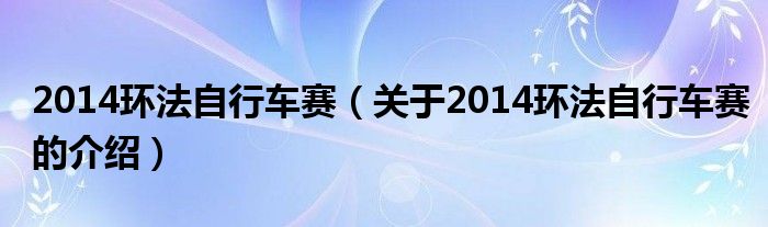 2014环法自行车赛(关于2014环法自行车赛的介绍)