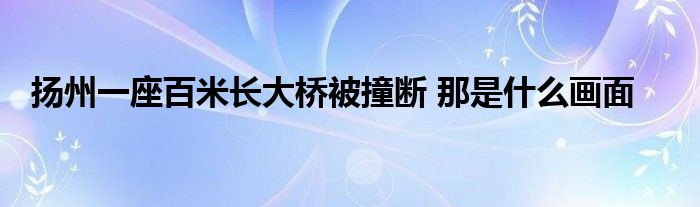 大家好.我是互联百科的羽儿,现在为大家解决以上扬州一座百米长大桥被撞断 那是什么画面的问题.
