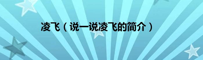 夏弥来为大家解答以下的问题,凌飞,说一说凌飞的简介,现在让我们一起来看看吧!