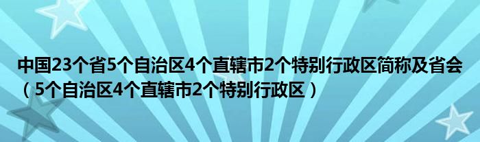 中国23个省5个自治区4个直辖市2个特别行政区简称及省会(5个自治区4个直辖市2个特别行政区)