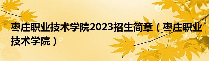 枣庄职业技术学院2023招生简章(枣庄职业技术学院)