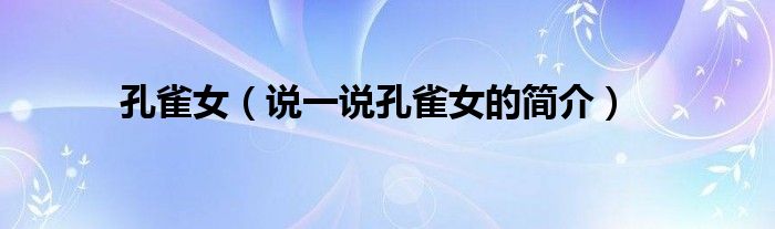 夏弥来为大家解答以下的问题,孔雀女,说一说孔雀女的简介,现在让我们一起来看看吧!
