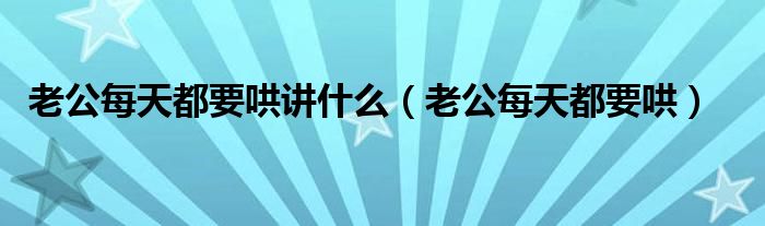 关于老公每天都要哄讲什么,老公每天都要哄这个很多人还不知道,今天菲菲来为大家解答以上的问题,现在让我们一起来看看吧!