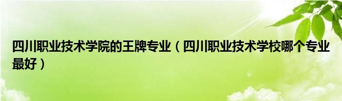 四川职业技术学院的王牌专业(四川职业技术学校哪个专业最好)