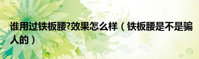 关于谁用过铁板腰?效果怎么样,铁板腰是不是骗人的这个很多人还不知道,今天菲菲来为大家解答以上的问题,现在让我们一起来看看吧!