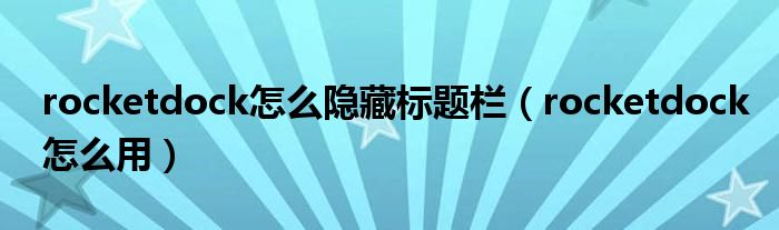 大家好,小飞来为大家解答以上问题,rocketdock怎么隐藏标题栏,rocketdock怎么用很多人还不知道,现在让我们一起来看看吧!