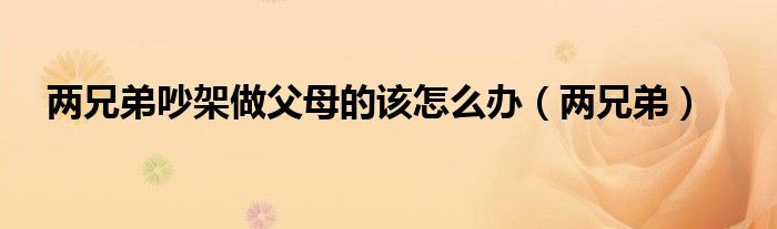 关于两兄弟吵架做父母的该怎么办,两兄弟这个很多人还不知道,今天菲菲来为大家解答以上的问题,现在让我们一起来看看吧!