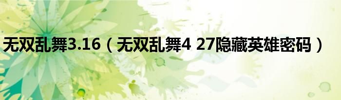 无双乱舞3.16(无双乱舞4 27隐藏英雄密码)