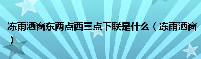 冻雨洒窗东两点西三点下联是什么,冻雨洒窗这个很多人还不知道,小飞来为大家解答以上的问题。现在让我们一起来看看吧!