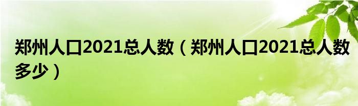 郑州人口2021总人数,郑州人口2021总人数多少这个很多人还不知道,小飞来为大家解答以上的问题。现在让我们一起来看看吧!
