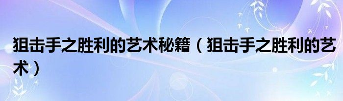 狙击手之胜利的艺术秘籍(狙击手之胜利的艺术)
