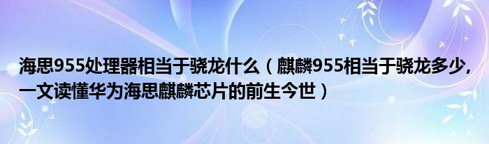 大家好,小常来为大家解答以上问题。海思955处理器相当于骁龙什么,麒麟955相当于骁龙多少,一文读懂华为海思麒麟芯片的前生今世很多人还不知道,现在让我们一起来看看吧!