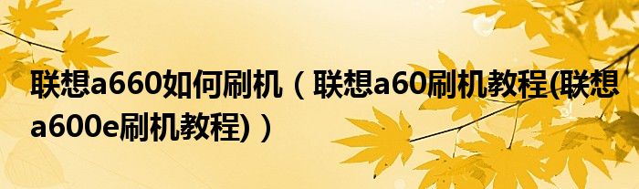 大家好,小常来为大家解答以上问题。联想a660如何刷机,联想a60刷机教程(联想a600e刷机教程)很多人还不知道,现在让我们一起来看看吧!