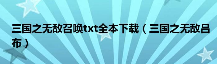三国之无敌召唤txt全本下载,三国之无敌吕布这个很多人还不知道,小飞来为大家解答以上的问题。现在让我们一起来看看吧!