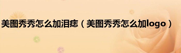 大家好,小飞来为大家解答以上问题,美图秀秀怎么加泪痣,美图秀秀怎么加logo很多人还不知道,现在让我们一起来看看吧!