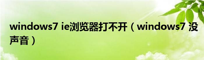 大家好,慧慧来为大家解答以上问题,windows7 ie浏览器打不开,windows7 没声音很多人还不知道,现在让我们一起来看看吧!