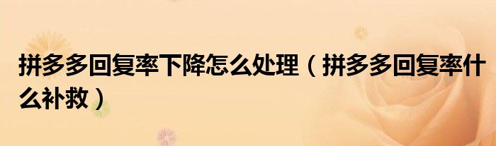 大家好,跳跳为你解答以上问题。拼多多回复率下降怎么处理,拼多多回复率什么补救这个问题很多人还不知道,现在让我们一起来看看吧!