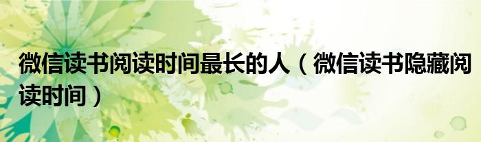 大家好,跳跳为你解答以上问题。微信读书阅读时间最长的人,微信读书隐藏阅读时间这个问题很多人还不知道,现在让我们一起来看看吧!