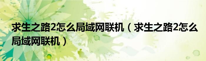 大家好,慧慧来为大家解答以上问题,求生之路2怎么局域网联机,求生之路2怎么局域网联机很多人还不知道,现在让我们一起来看看吧!