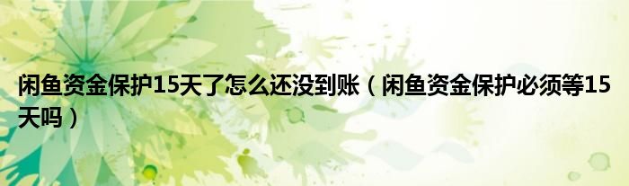 大家好,跳跳为你解答以上问题。闲鱼资金保护15天了怎么还没到账,闲鱼资金保护必须等15天吗这个问题很多人还不知道,现在让我们一起来看看吧!