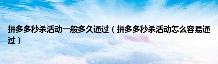 大家好,跳跳为你解答以上问题。拼多多秒杀活动一般多久通过,拼多多秒杀活动怎么容易通过这个问题很多人还不知道,现在让我们一起来看看吧!