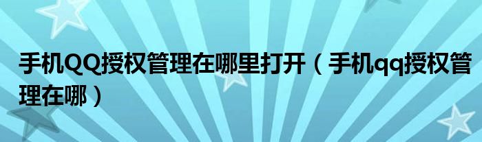 手机QQ授权管理在哪里打开(手机qq授权管理在哪)