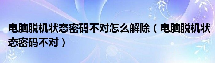 大家好,小晋来为大家解答以下问题,关于电脑脱机状态密码不对怎么解除,电脑脱机状态密码不对很多人还不知道,今天让我们一起来看看吧!
