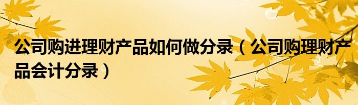 关于公司购进理财产品如何做分录,公司购理财产品会计分录这个很多人还不知道,今天菲菲来为大家解答以上的问题,现在让我们一起来看看吧!