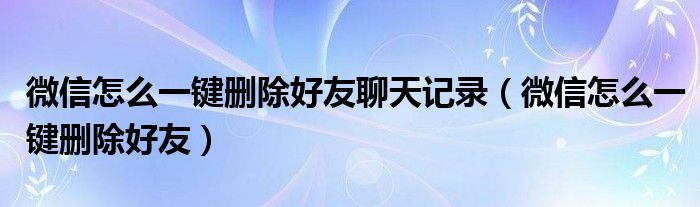 微信怎么一键删除好友聊天记录(微信怎么一键删除好友)