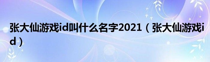 大家好,小晋来为大家解答以下问题,关于张大仙游戏id叫什么名字2021,张大仙游戏id很多人还不知道,今天让我们一起来看看吧!