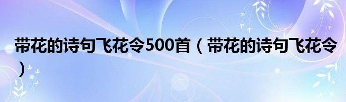 大家好,小晋来为大家解答以下问题,关于带花的诗句飞花令500首,带花的诗句飞花令很多人还不知道,今天让我们一起来看看吧!