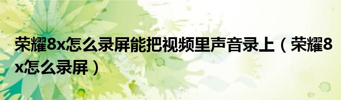 大家好,小晋来为大家解答以下问题,关于荣耀8x怎么录屏能把视频里声音录上,荣耀8x怎么录屏很多人还不知道,今天让我们一起来看看吧!