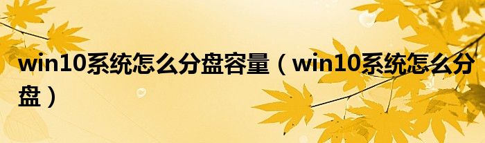 大家好,小晋来为大家解答以下问题,关于win10系统怎么分盘容量,win10系统怎么分盘很多人还不知道,今天让我们一起来看看吧!