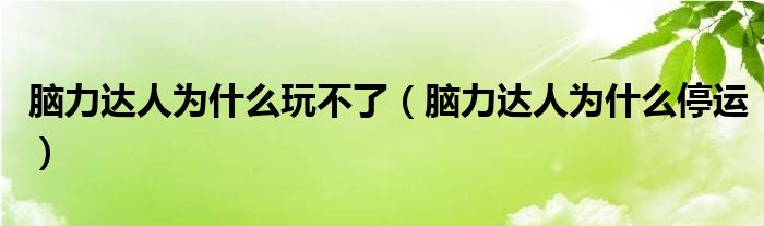 大家好,小晋来为大家解答以下问题,关于脑力达人为什么玩不了,脑力达人为什么停运很多人还不知道,今天让我们一起来看看吧!