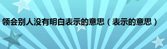 关于领会别人没有明白表示的意思,表示的意思这个很多人还不知道,今天菲菲来为大家解答以上的问题,现在让我们一起来看看吧!