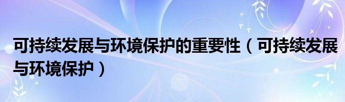 关于可持续发展与环境保护的重要性,可持续发展与环境保护这个很多人还不知道,今天菲菲来为大家解答以上的问题,现在让我们一起来看看吧!